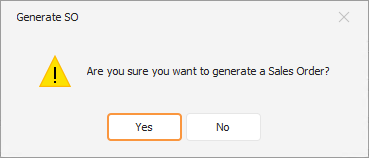 Click Yes to confirm the sales order generation. A confirmation popup appears, displaying the newly generated sequential sales order number.