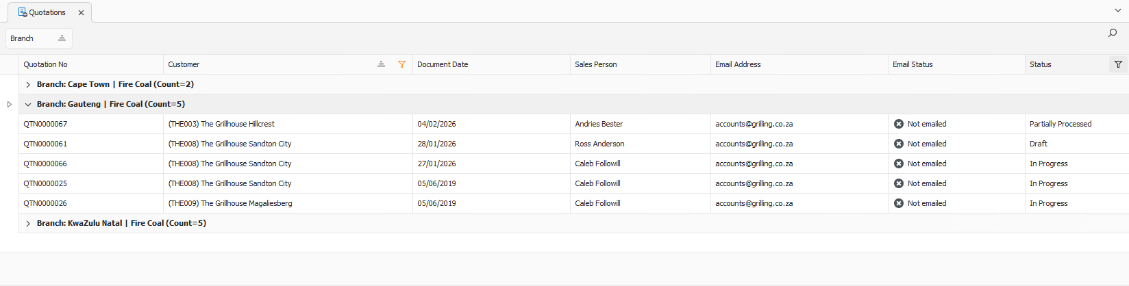 To generate an unprocessed sales order from a quotation, navigate to the relevant quotation. Open it by double-clicking it in the list, or by selecting it and pressing Enter.