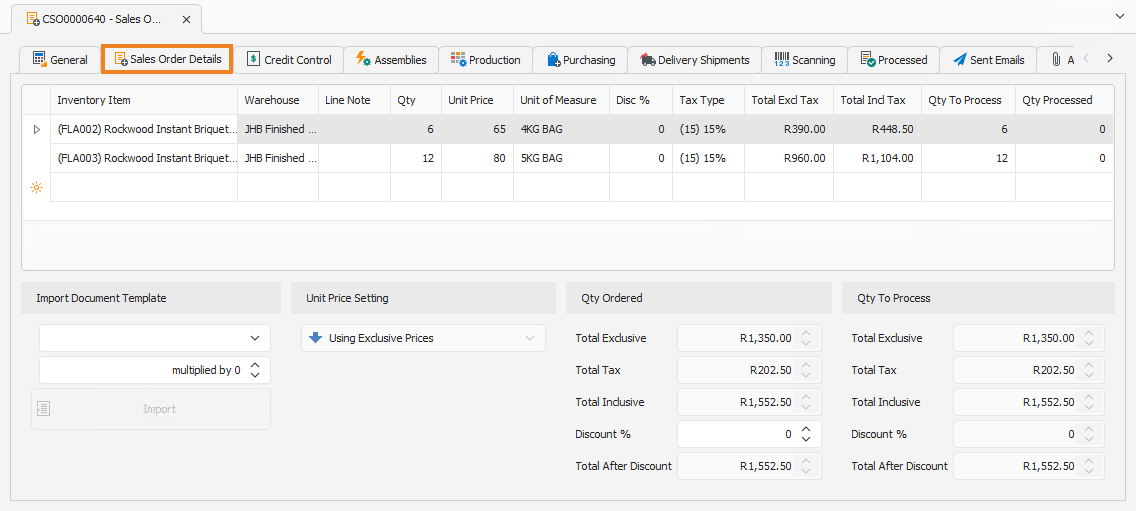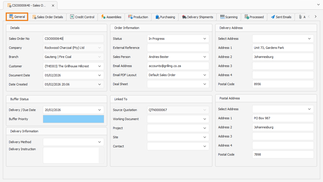 Sales Order Details Tab