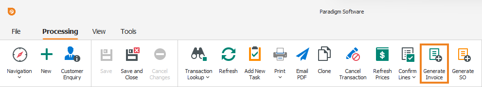 Once all item quantities have been updated or verified, click Generate Invoice on the toolbar.