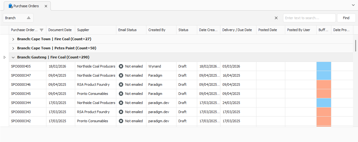 To generate an unprocessed GRN from a purchase order, navigate to the relevant purchase order. Open it by double-clicking it in the list, or by selecting it and pressing Enter.