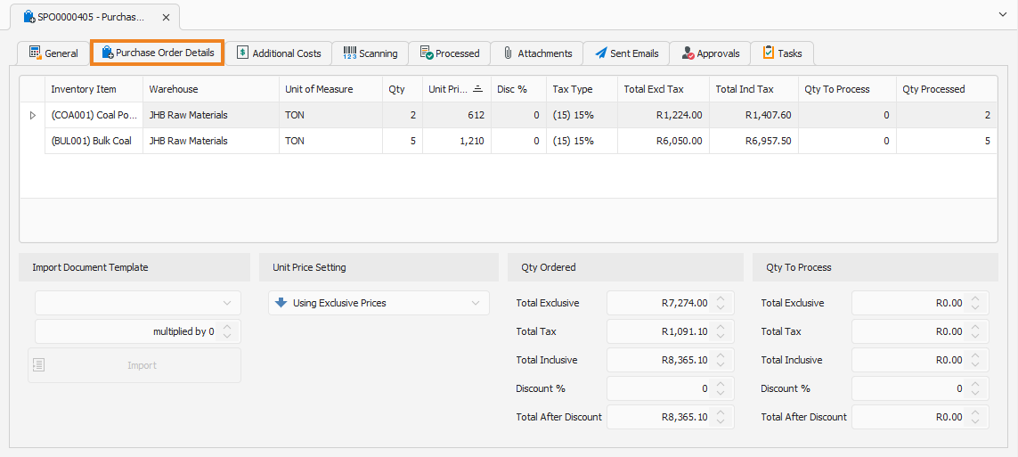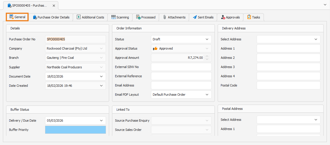 Purchase Order Details Tab