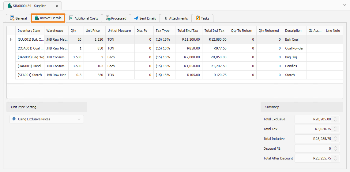 Invoice Details Tab