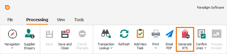 Note: An RTS can only be generated from a supplier invoice that has been posted to finance.