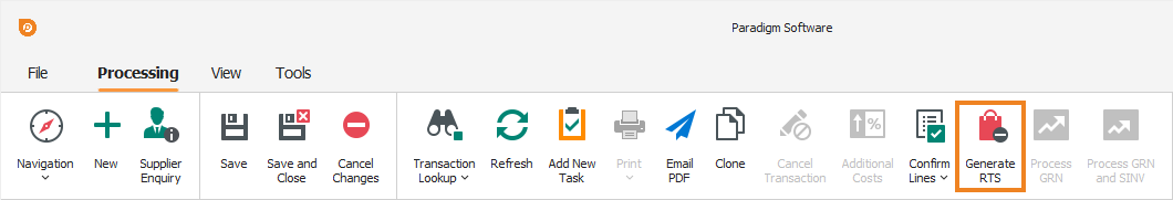 Note: This article focuses on the simplest common use case for generating an unprocessed return to supplier (RTS) from an existing goods received note (GRN).
