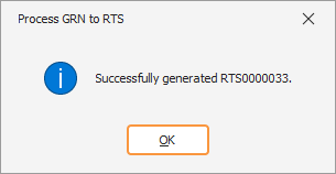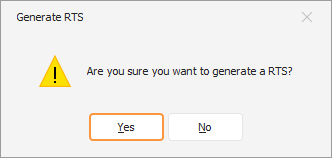 Click Yes to confirm the RTS generation. A confirmation popup appears, displaying the newly generated sequential RTS number.
