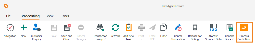 You can update some of the fields, if required. Once done, click Process Credit Note on the toolbar.