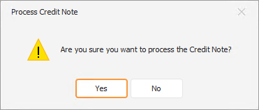 Click Yes to confirm the processing of the credit note. With the credit note processed, it can now be printed and emailed.