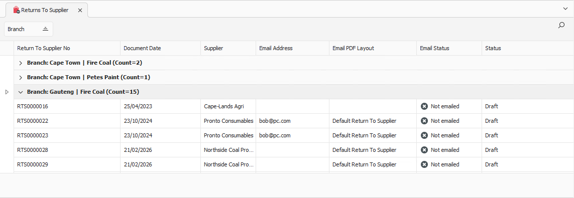 Navigation › Documents › Processing › Returns To Supplier