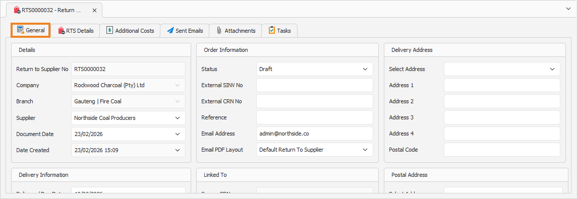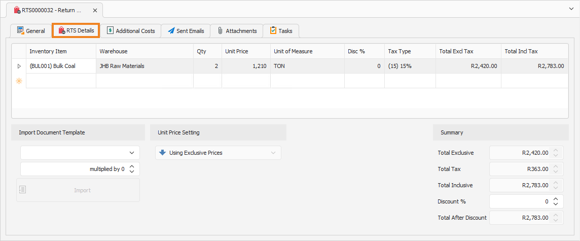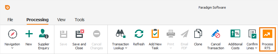 You can update some of the fields if required. Once done, click Process RTS on the toolbar.