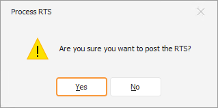 Click Yes to confirm the processing of the RTS. A popup confirms successful processing.